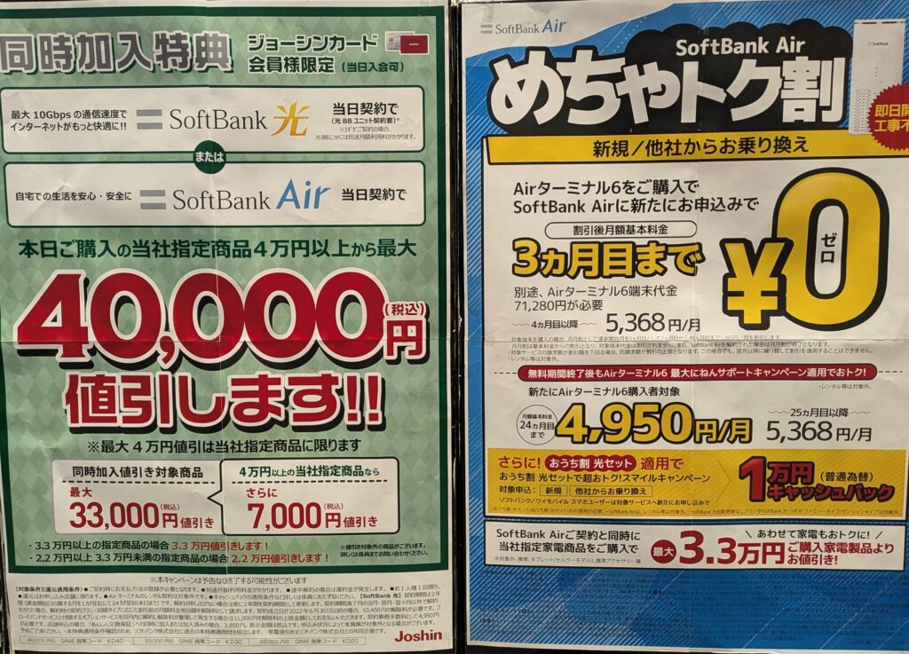 あとは、ソフトバンクとワイモバイルの契約状況や、ジョーシンの買物履歴はチェックされますので、ヒドい人は還元を受けれない可能性はありそうです。