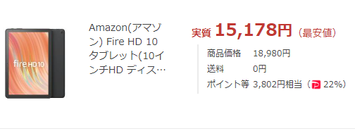 2024年3月29日(金)、Joshin webでは2023年10月発売の「Fire HD 10(13世代)64GB」が18,980円(税込)に、LYPプレミアム会員で約3,802円相当のPayPay還元となっています。