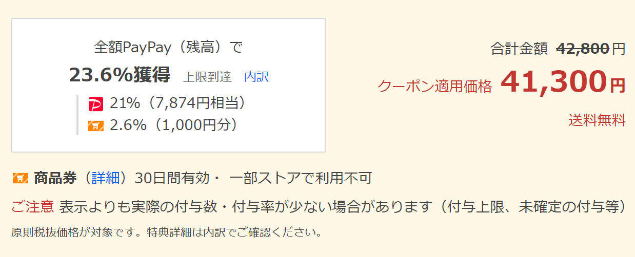 自身のPayPay還元額はコジマYahoo!店にログインの上、ご確認下さい。