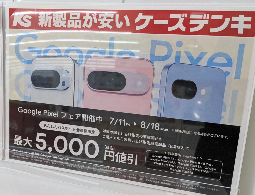 そして、Google Pixelフェアの+5,000円相当追加還元ですが、ケーズは家電値引きだと思いますが、ヤマダ、ジョーシン、エディオン等はポイント還元が可能です。
