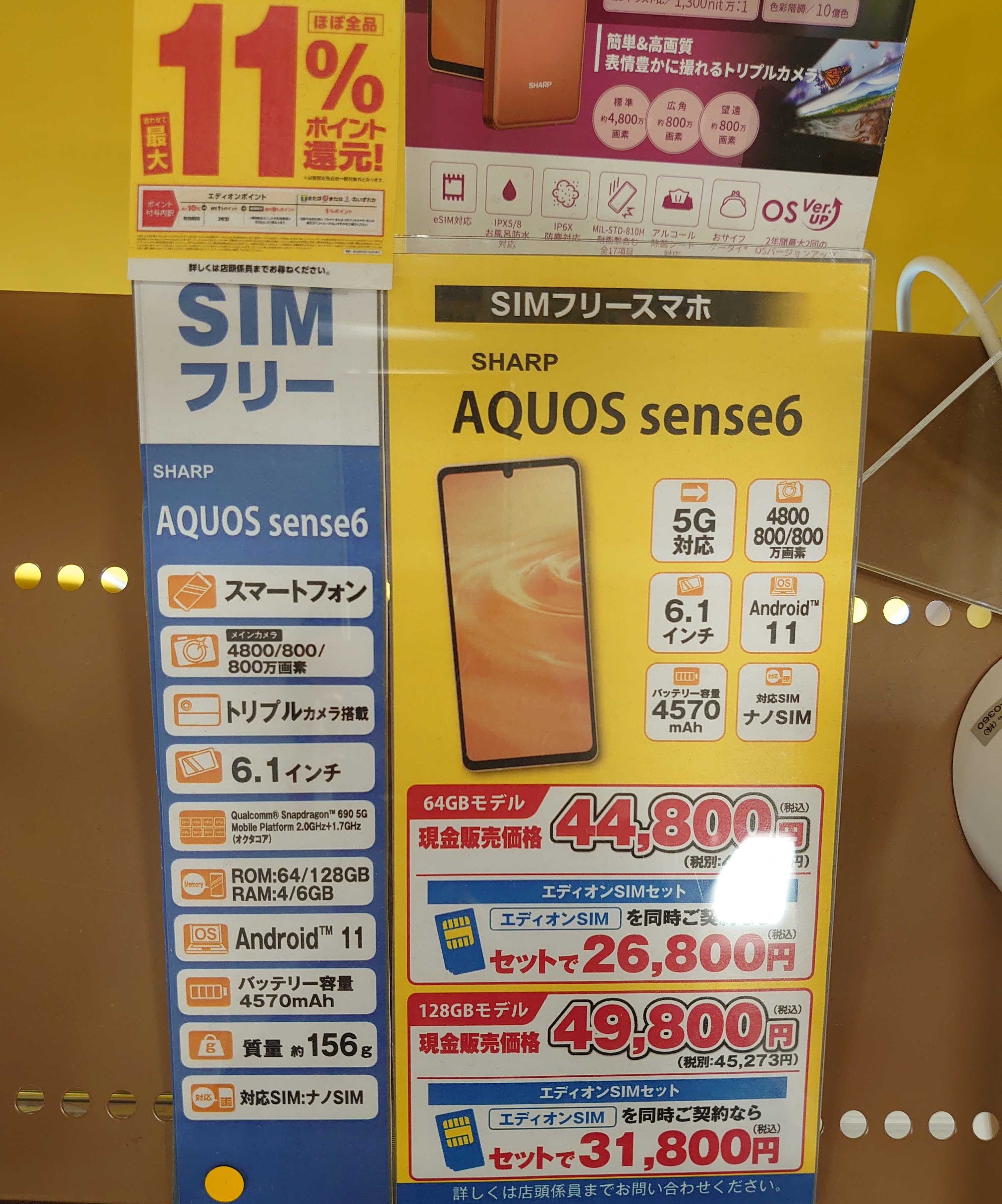 ・AQUOS sense6 4GB/64GB(amazon.co.jp)