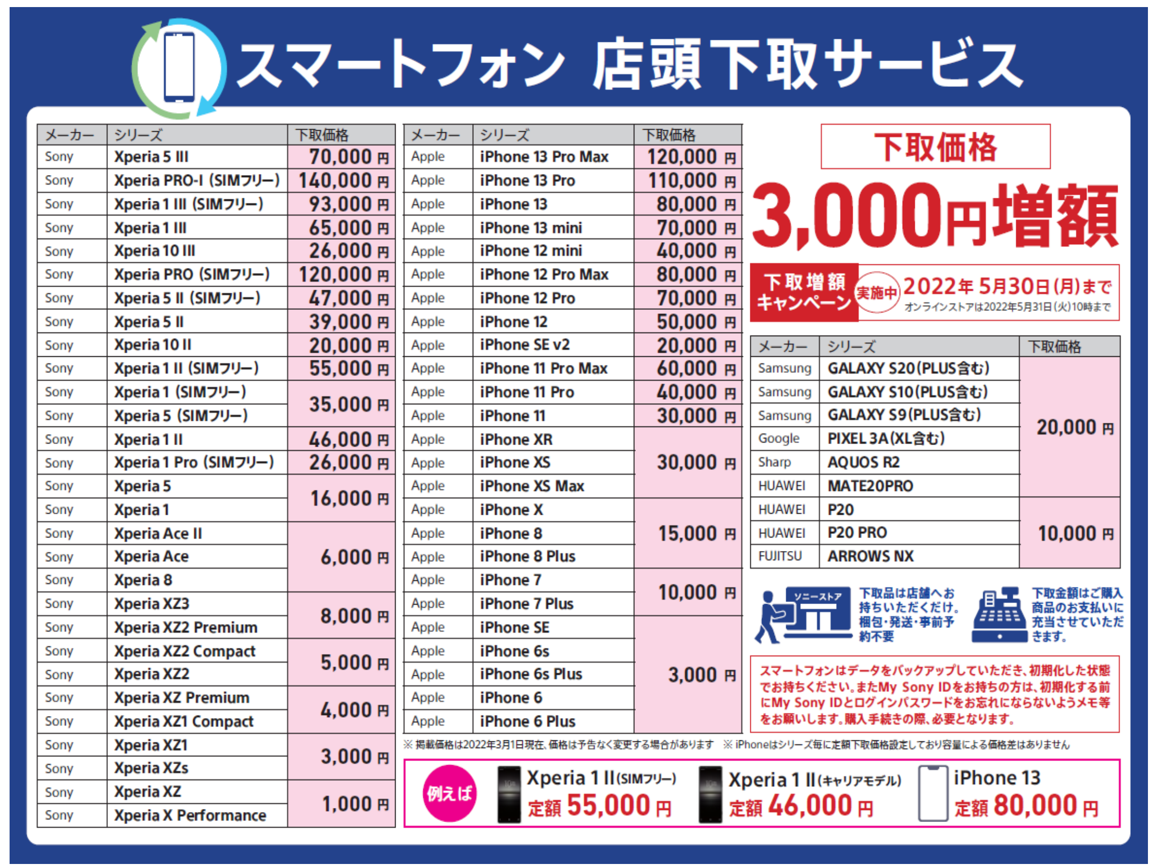 さすがSIMフリーということで、「Xperia 5」と「Xperia 1」のSIMフリー版の下取価格は5/30(月)まで3,000円増額で、38,000円です。