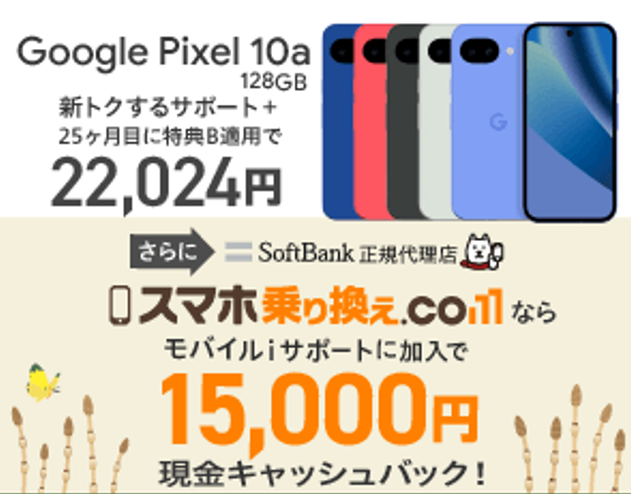 「Google Pixel 10a」はMNPで15,000円キャッシュバック