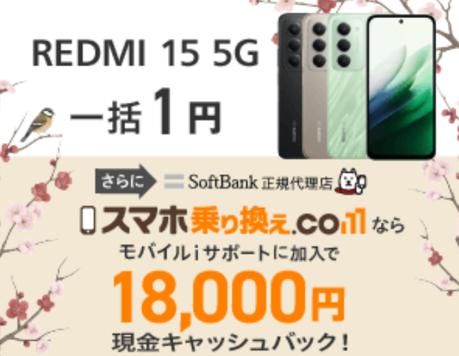 「REDMI 15 5G」がMNP一括1円+18,000円キャッシュバック