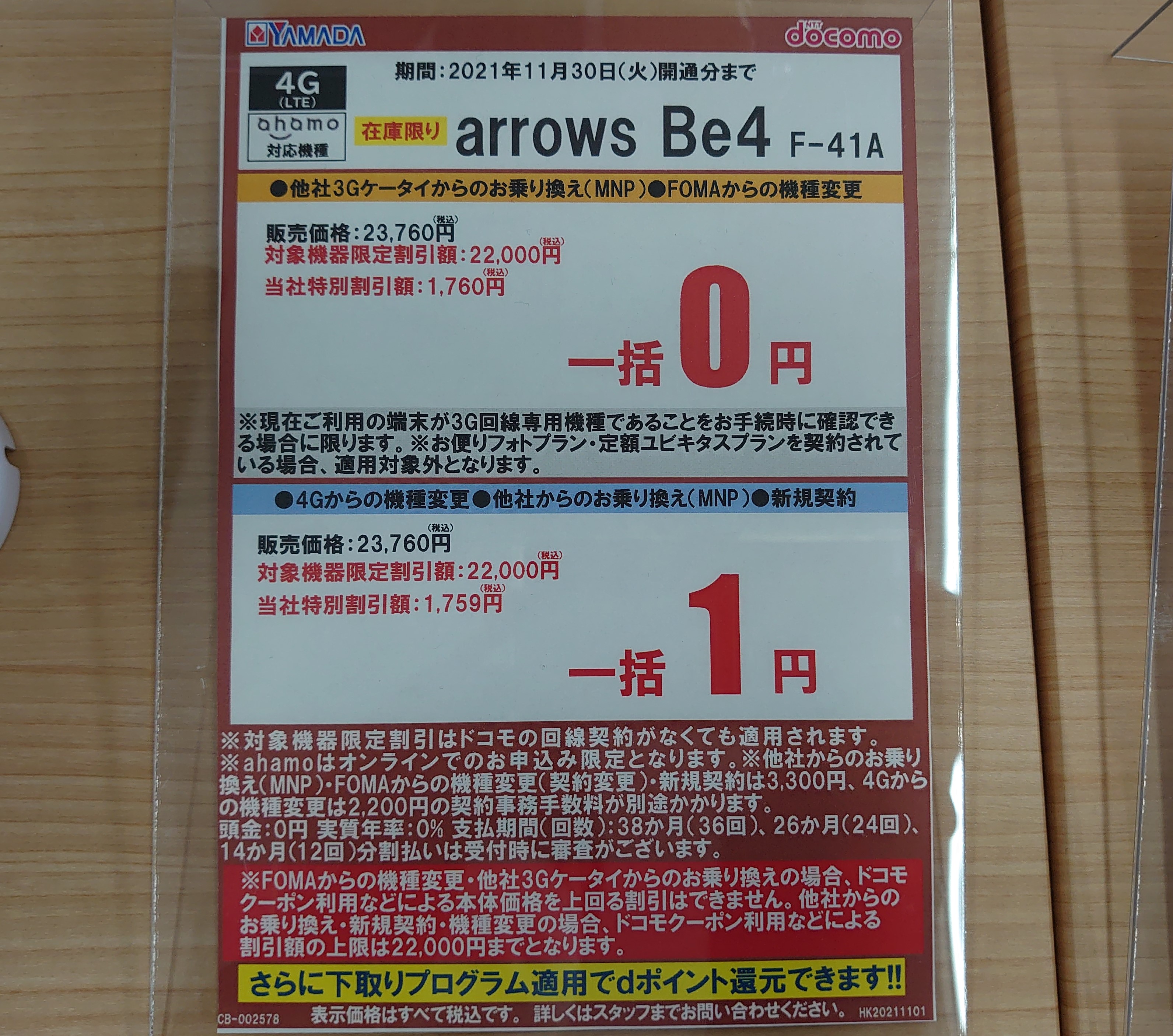 ヤマダ電機では、LGの国内ラストスマホとなったドコモ「LG VELVET L-52A(税込70,488円)」が4G・5Gからの機種変更で一括11,000円(税込)となっています。11月30日(火)まで。LGデュアルスクリーンは付いていませんのでご注意下さい。また、在庫も少なくなっているはずですから、欲しい方はお急ぎ下さい。