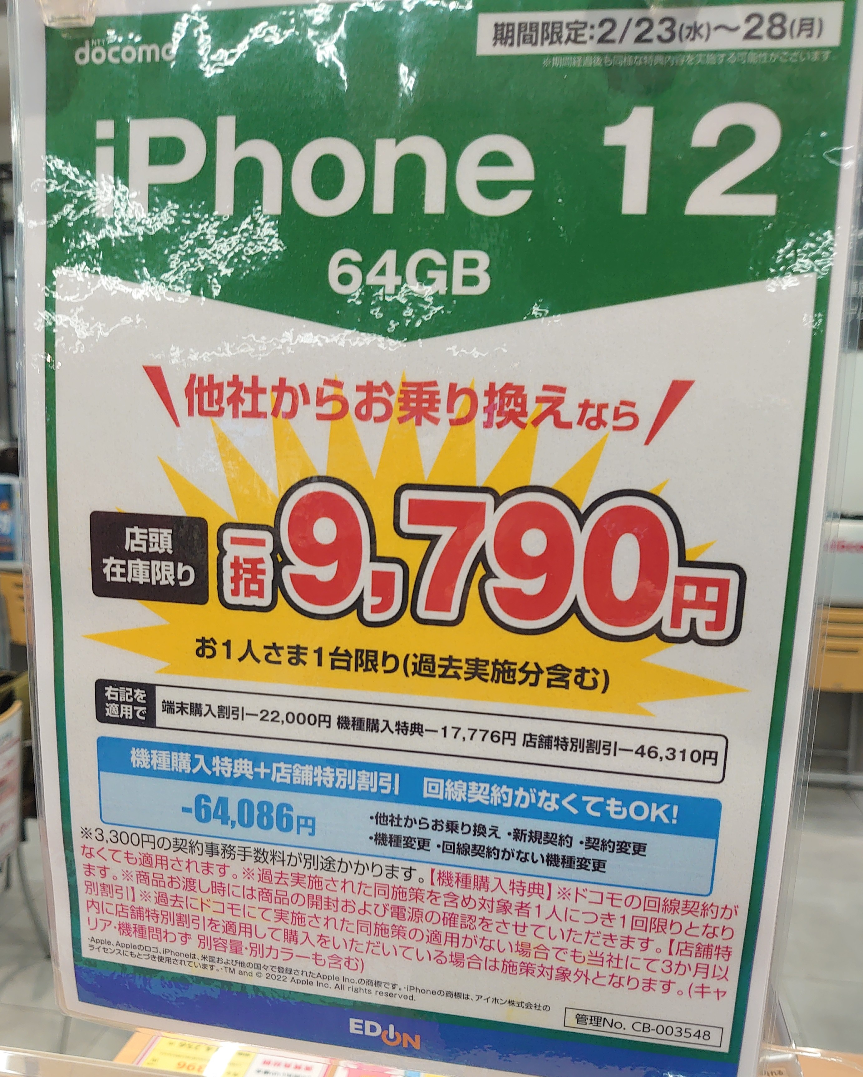 エディオンの独自割引がかかる分の厳重チェックは仕方ないですが、料金プランもとなるとセコい感じはしますね。お互い様ではありますが(笑)