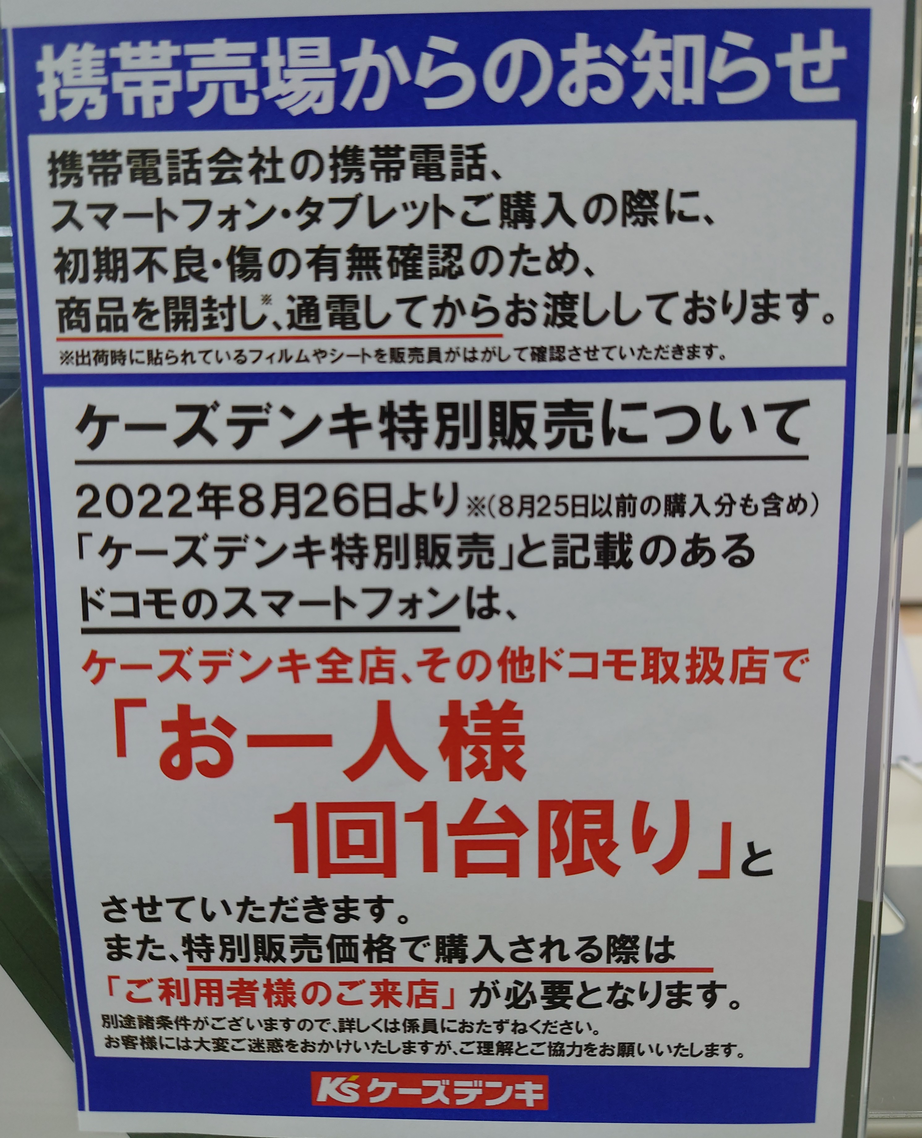ヤマダ電機やケーズデンキの告知もご参照下さい。