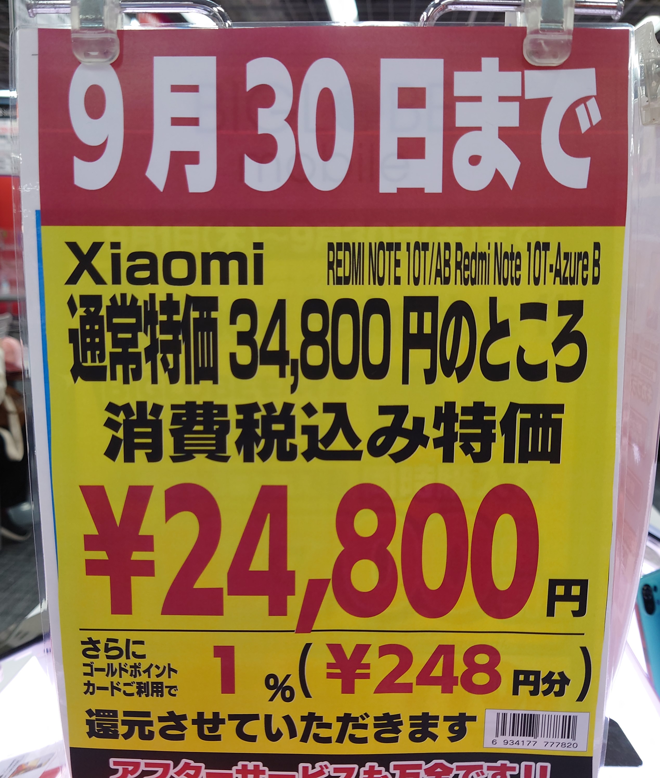 ヨドバシカメラでは、2022年4月発売のXiaomi「Redmi Note 10T」が24,800円(税込)となっています。