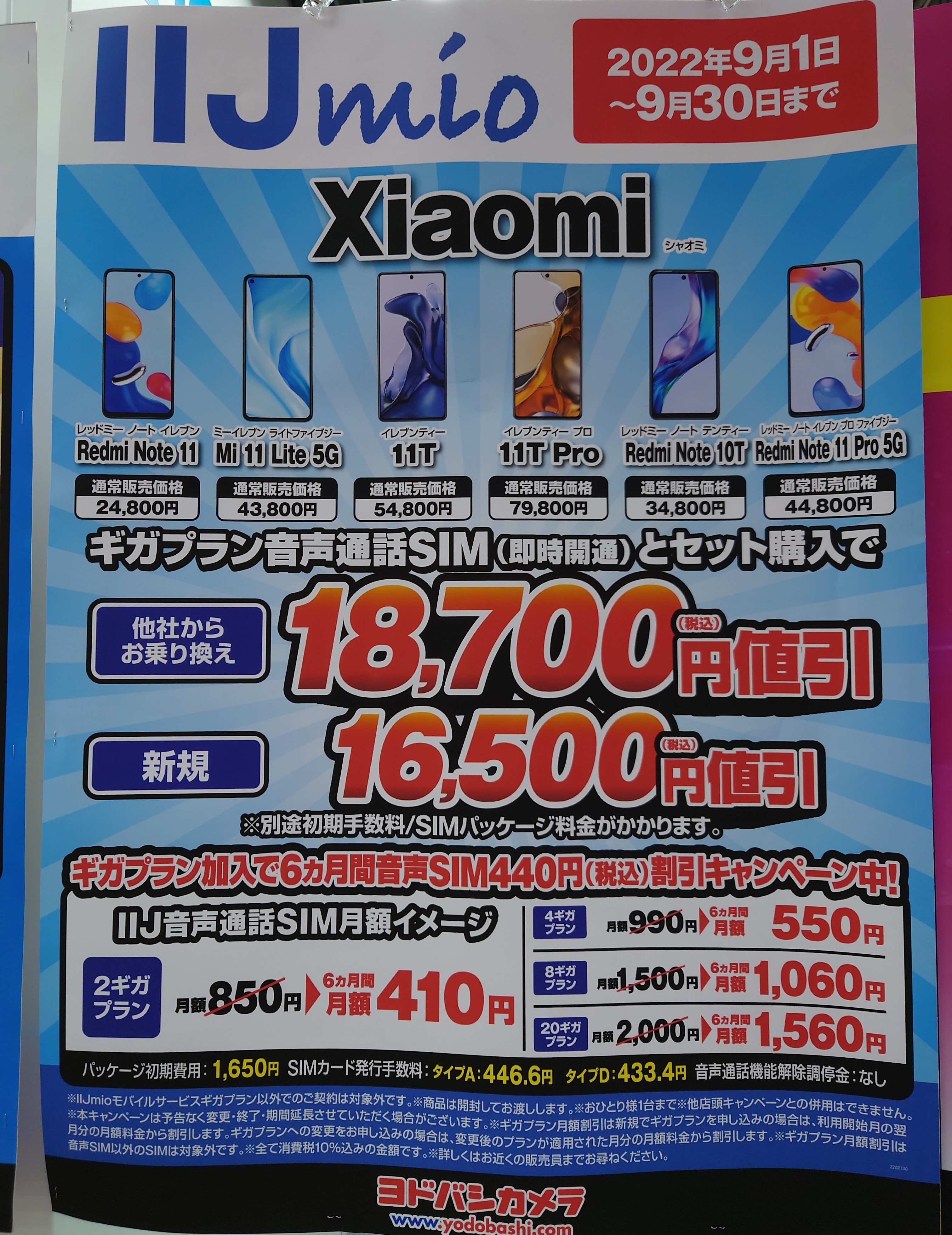 IIJmioへのMNPで18,700円割引の6,100円(税込)、新規で16,500円割引の8,300円です。事務手数料は1,650円(税込)。