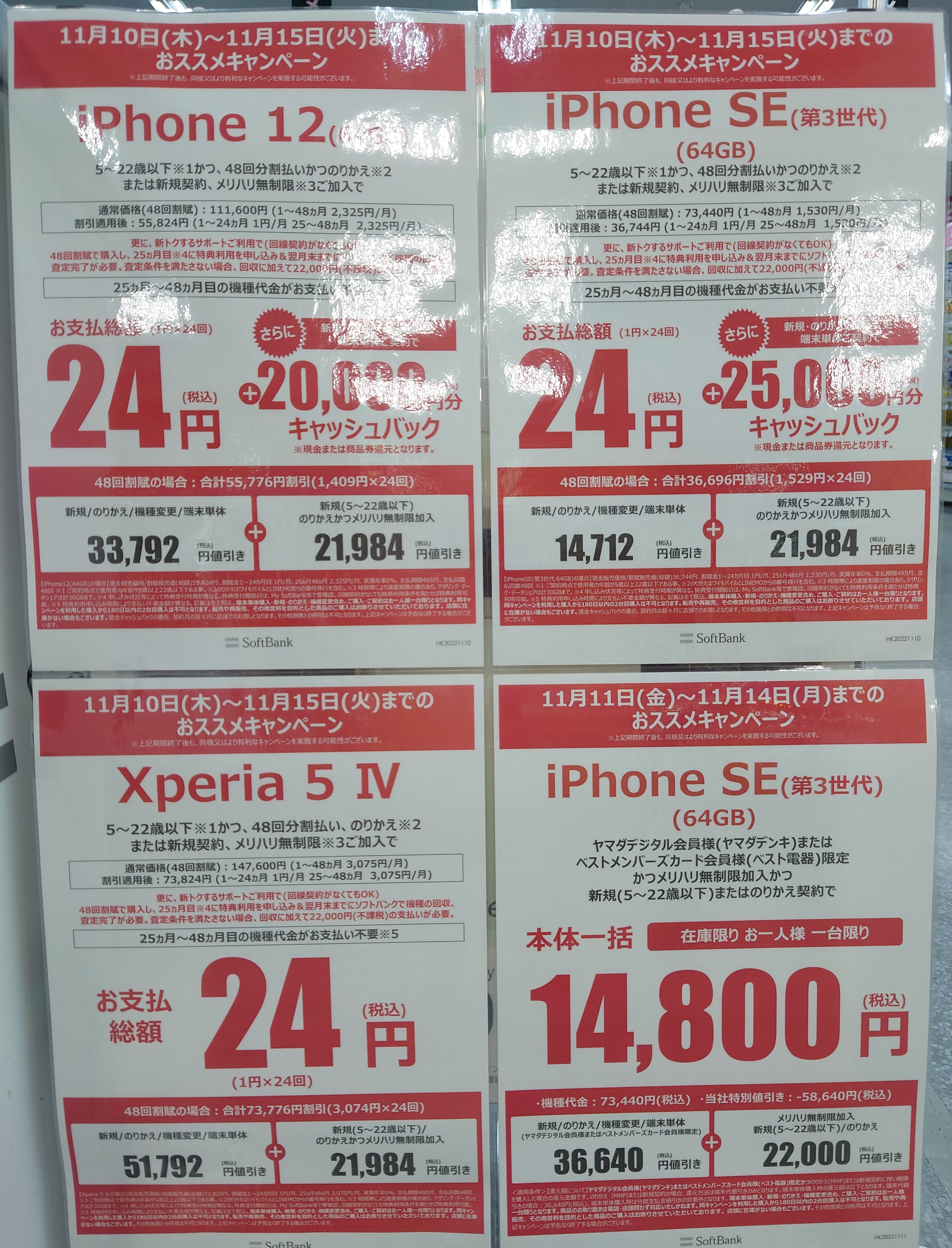 年末に向けてというか、今後はiPhone一括1円のような超特価は減っていく流れのようです。