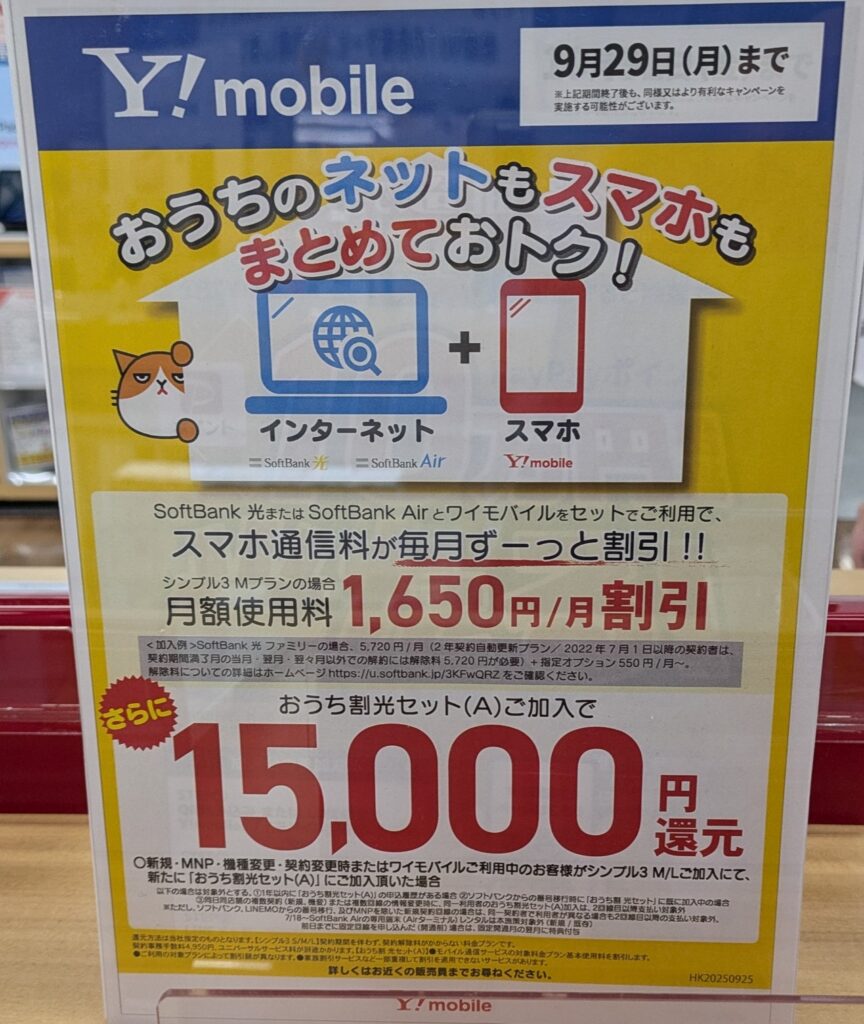 事務手数料は4,950円(税込)、10/31(金)まで。既にポップは10月分に切り替わっていますが、各機種とも特に9月と変わりはないようです。