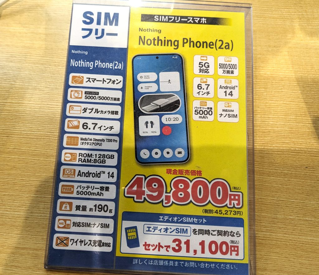 2024年5月11日(土)、ヤマダデンキYahoo!店では、2024年4月22日発売のNothing「Phone (2a)」が、3%OFFゾロ目クーポン適用、及びPayPayポイント獲得分を今すぐ利用で約43,711円(税込)となっています。