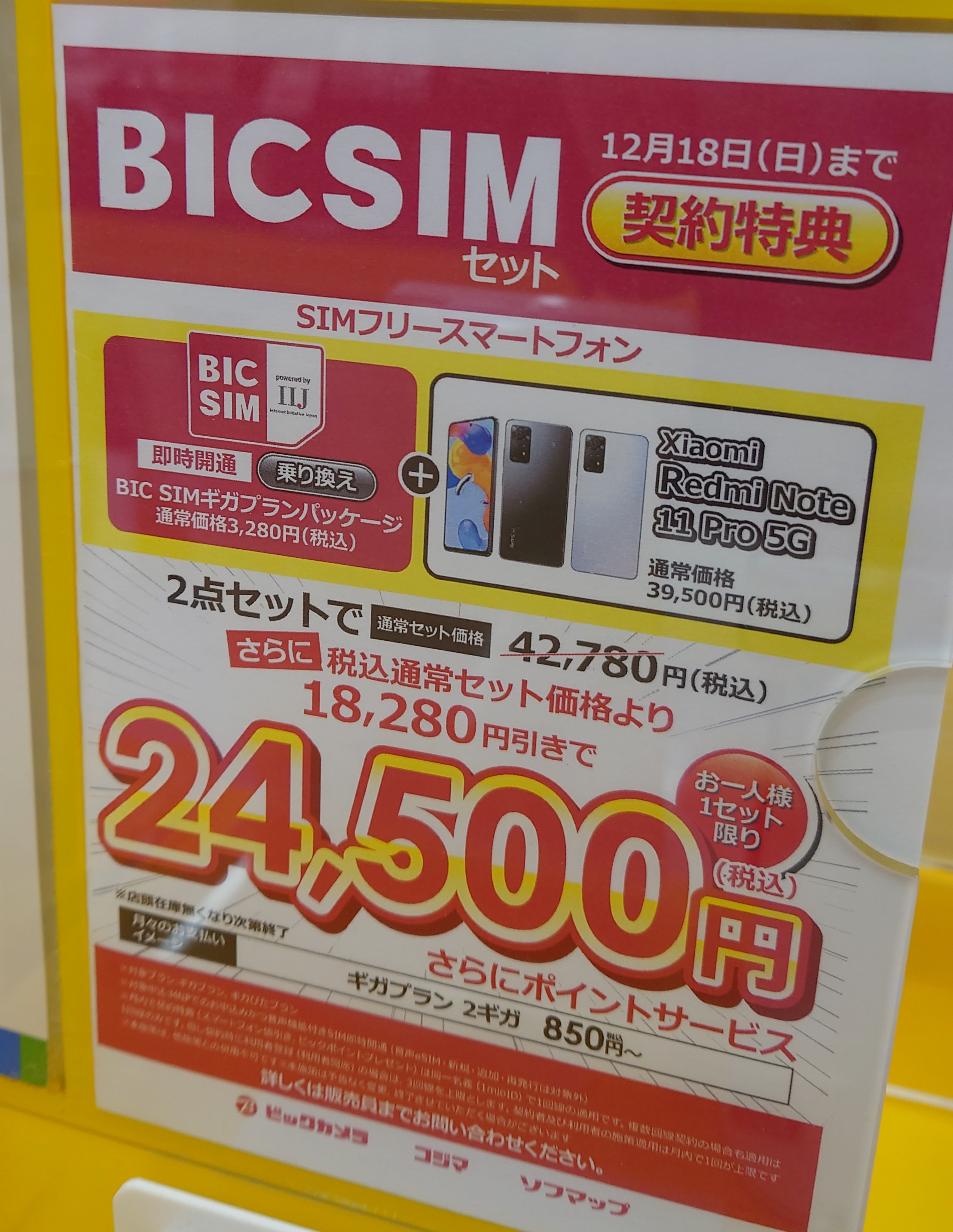 こちらの機種もビックカメラで同じく22,000円(税込)でしたので、一時的なキャンペーンというよりは、本体価格の値下げということかと思われます。