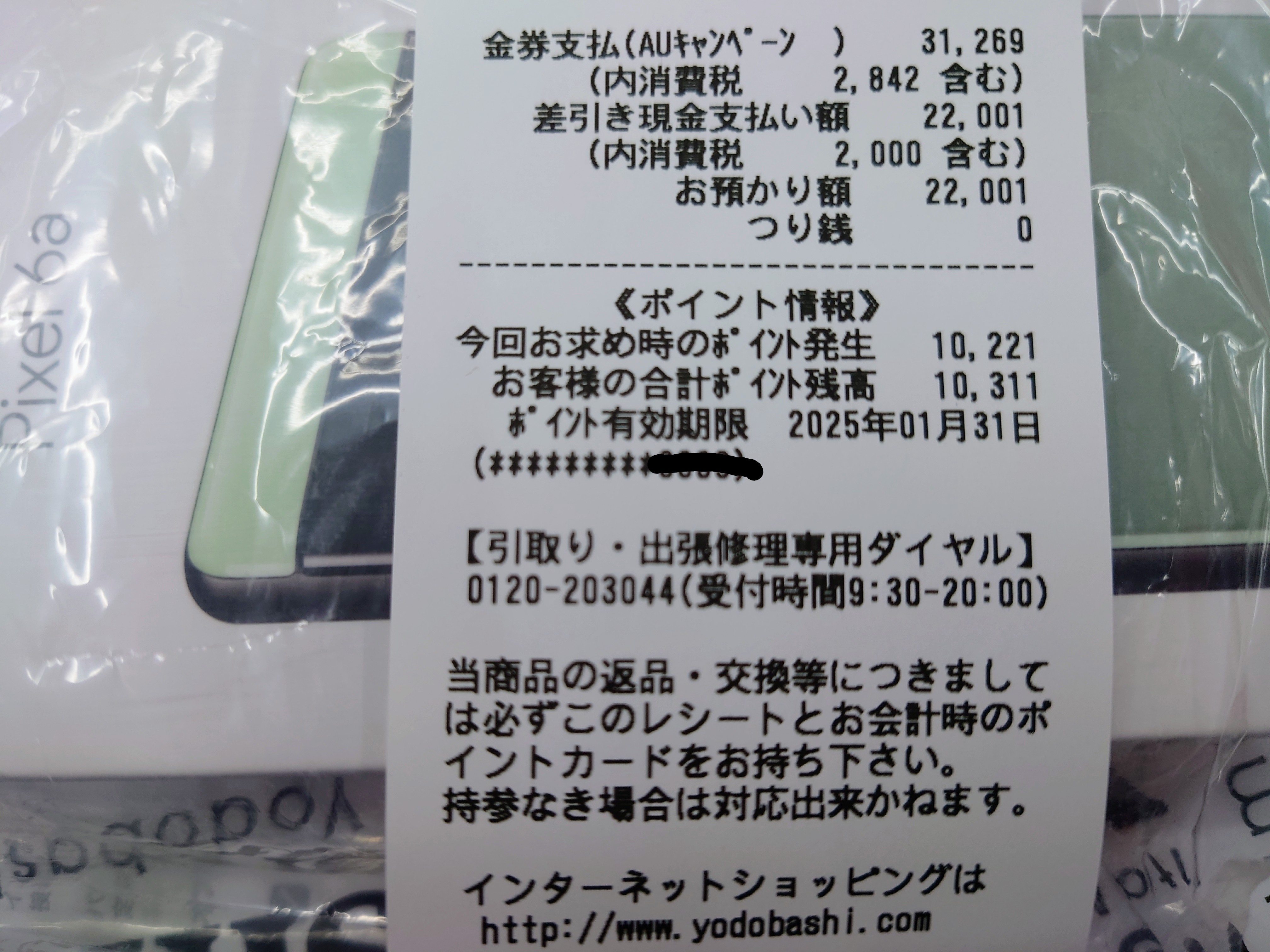 […] 2023.01.01 【1/1(元日)】au「Google Pixel 6a」が機種変更一括22,001円、さらに1万ポイント還元/ヨドバシカメラ 2023年1月1日(元旦)、ヨドバシカメラ梅田では、au「Google Pixel 6a(税込53,270円)」がMNP一括1円(税込)となっています。 事務手数料は3,300円(税込)。 ※一括ポップは出ていませんので、裏CP的な扱いのようです。 端末のみ購入・機種変更は一括22,001円(税込)。 そして、6ヵ月以上利用者の機種変更はさらに1… […]