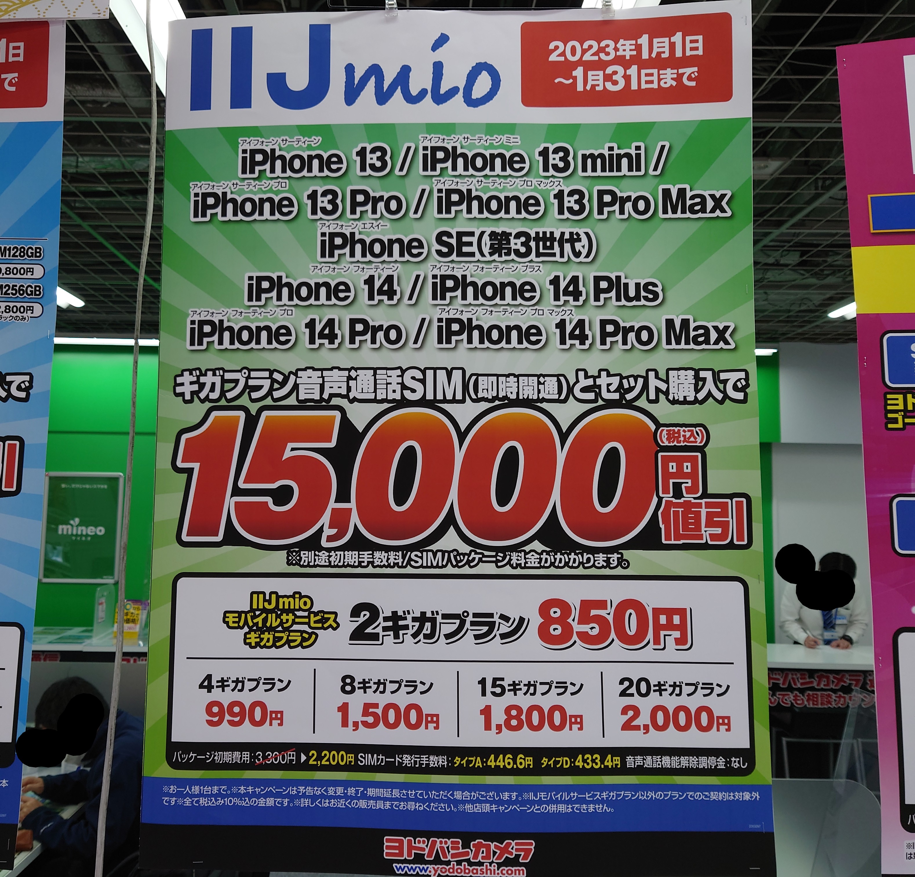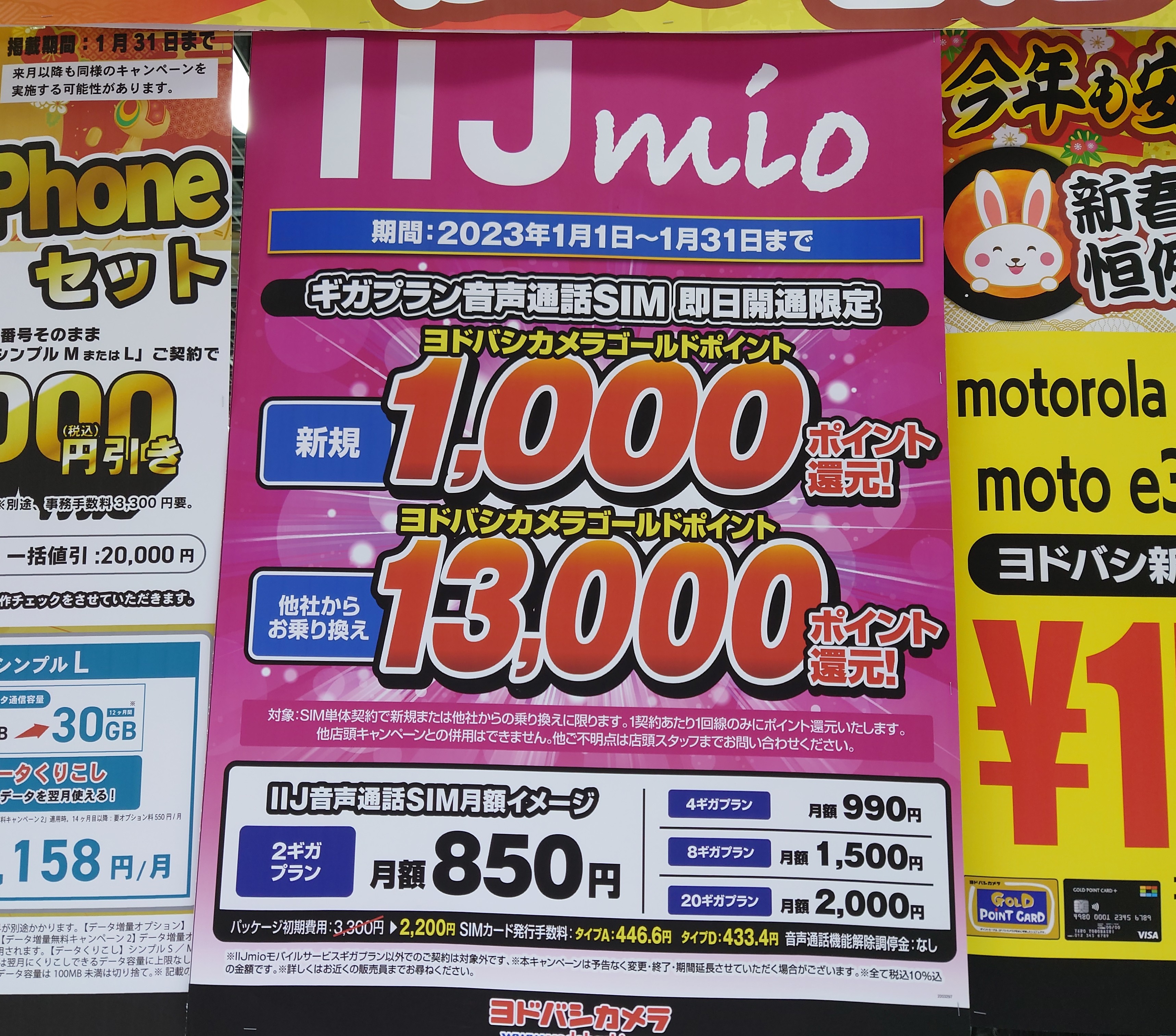 iijmioのヨドバシポイントを12月の中頃にもらって、この記事のポップで年始にすると総合でした。 店員さんいわく、前回から一ヶ月経ってないからかもと言われました、参考までに。短期解約等はしていません。 返信