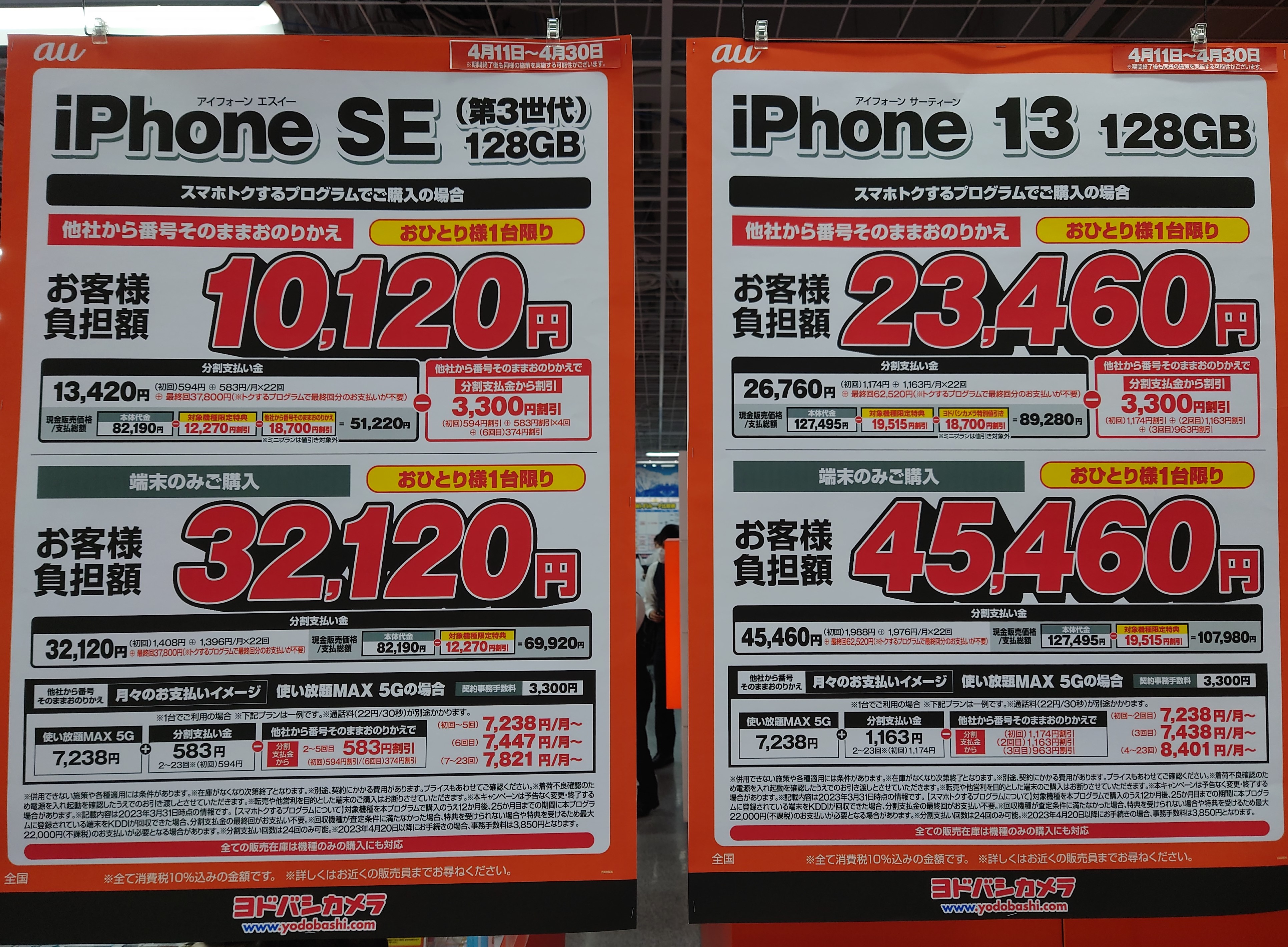 基本的にどの量販店でも上記価格かと思われます。iPhone SEに関しては極端な特価CPは実施していないようです。GWに期待しましょう。